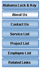 The Outside Locksmith Division provides an array of locksmith services to commercial, industrial, retail and residential clients in the five-county metropolitan area of Birmingham, Alabama. The service functions include re-keying locks; installing access control systems, deadbolts, door locks, panic devices, master key systems and high-security locking systems; and performing automotive lock work.